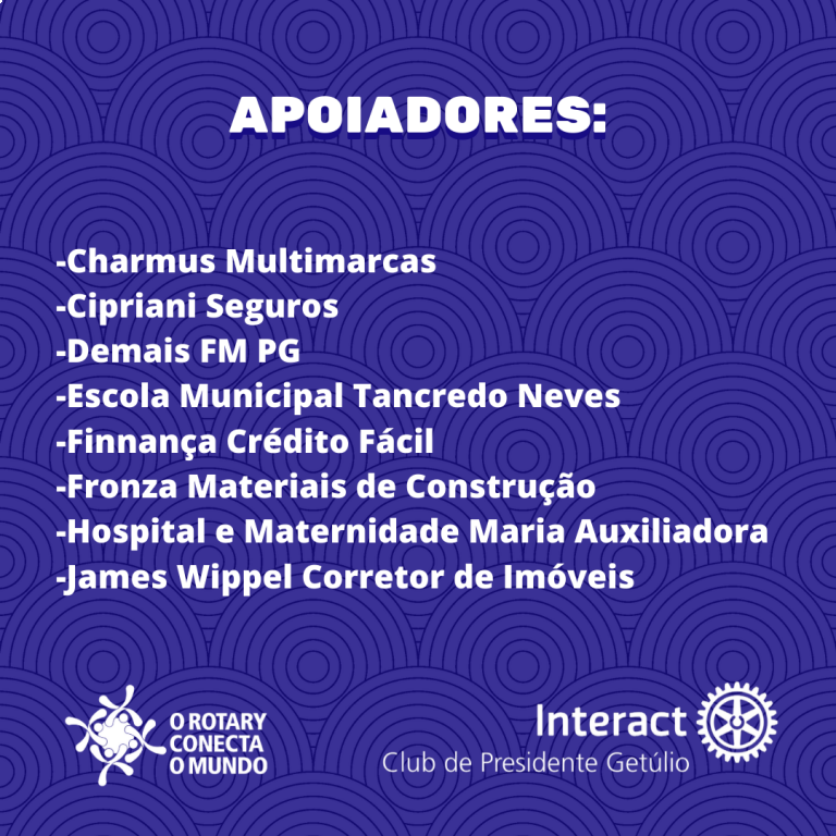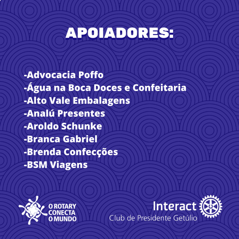 É com imensa gratidão que anunciamos os APOIADORES DO INTERACT CLUB DE PRES. GETÚLIO no ano de 2019.