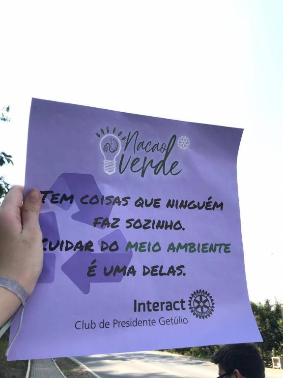 Hoje (15/09/2019), os companheiros do Interact Club de Presidente Getúlio junto o Rotary padrinho, Rotaract Club de Ibirama e convidados, realizaram o Projeto Nação Verde no trecho que liga o centro da cidade até o Bairro Niterói, também distribuímos placas pelo trecho para conscientizar as pessoas que o lugar do lixo não é no chão.